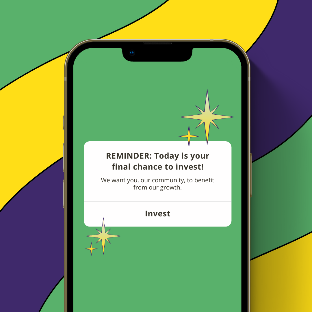 Starting at just $100, you can add our story and growth to your investment portfolio - specifically [INSERT REASON FOR CAMPAIGN]. We’re so excited to be able to offer this opportunity to our community, which is why we’re reaching out to you - we want the opportunity to pay you back for all the good you’ve given us over the years!